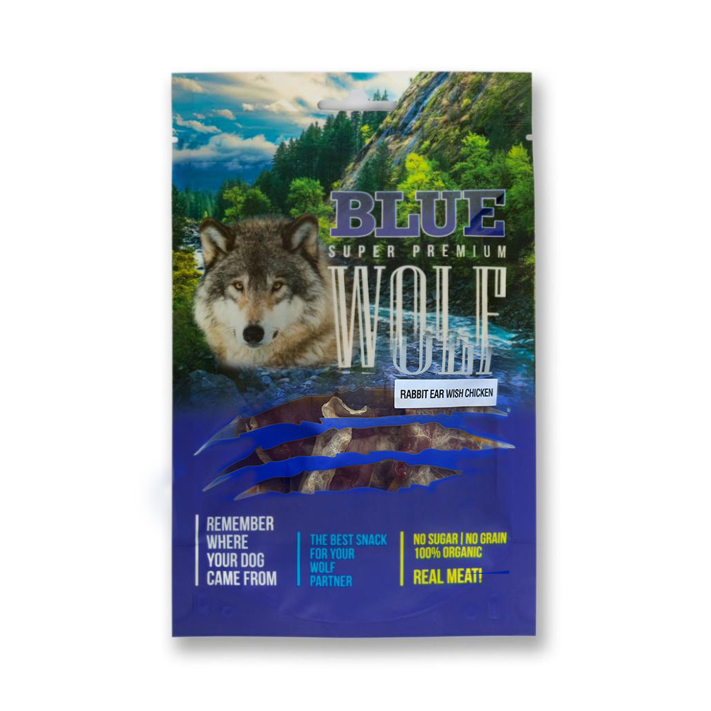 בלו וולף חטיף פרימיום בשר עוף ואוזני ארנבת בציפוי 1 גרם